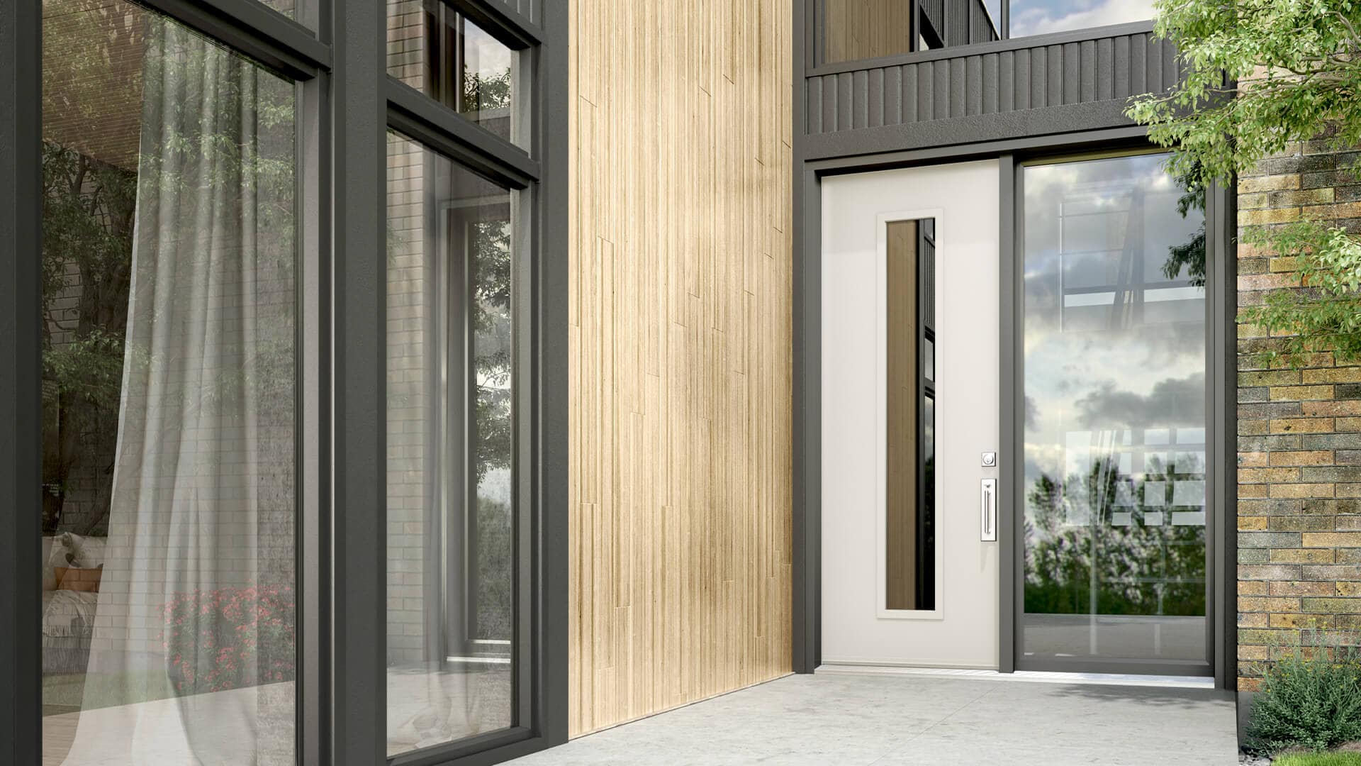 Plain or embossed, choose a steel door model. Then compose your own style. Add a cut-out, a clear, sandblasted or decorative glass and a color. And why not add a side glass and/or a transom window. And a nice hardware store. And voilà!